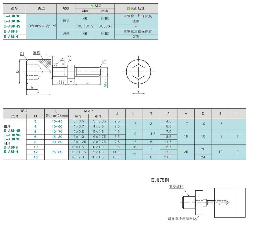 调整螺栓 内六角孔滚花旋钮型 经济型