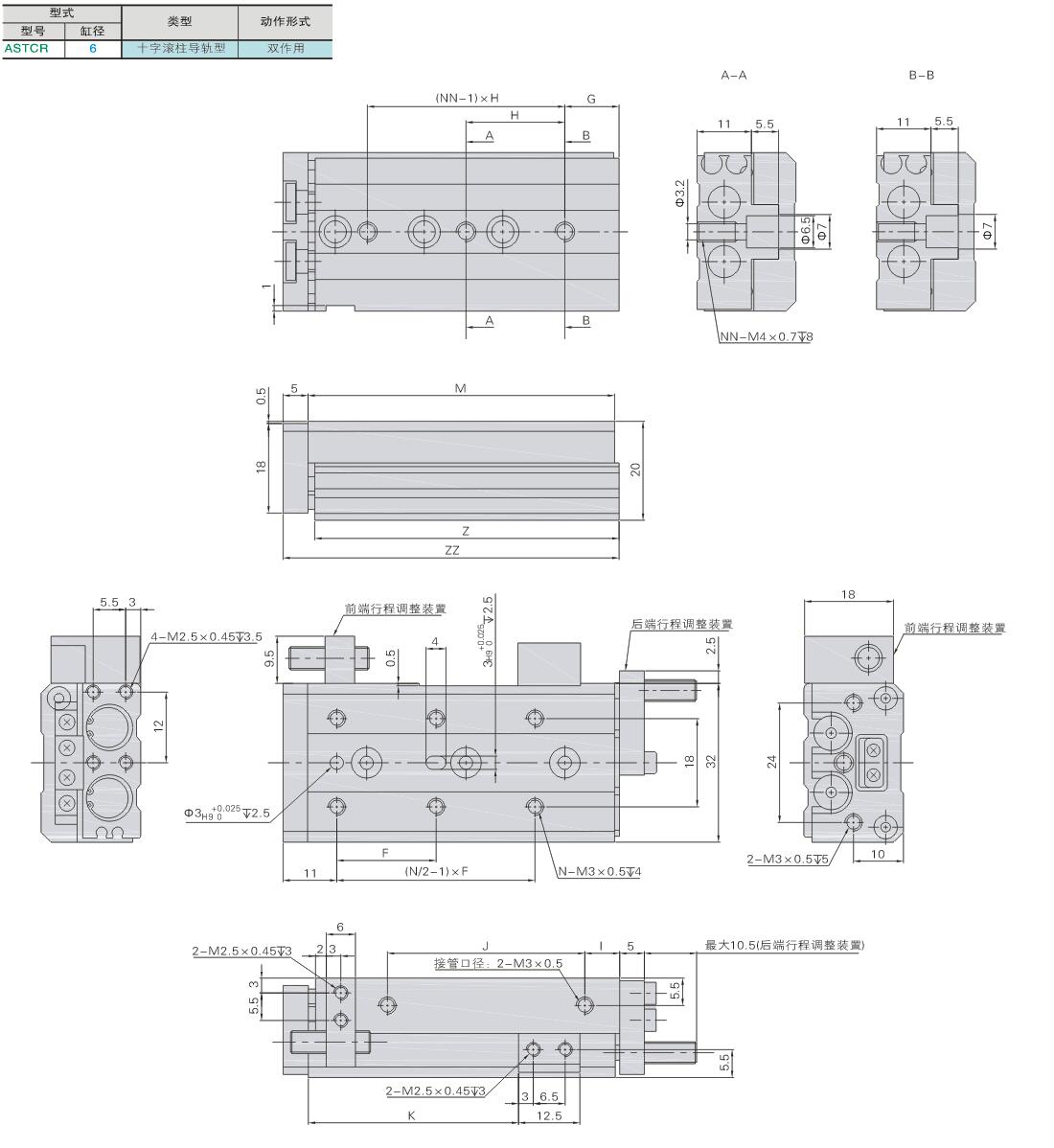 气动滑台 十字滚柱导轨型 缸径6 标准型
