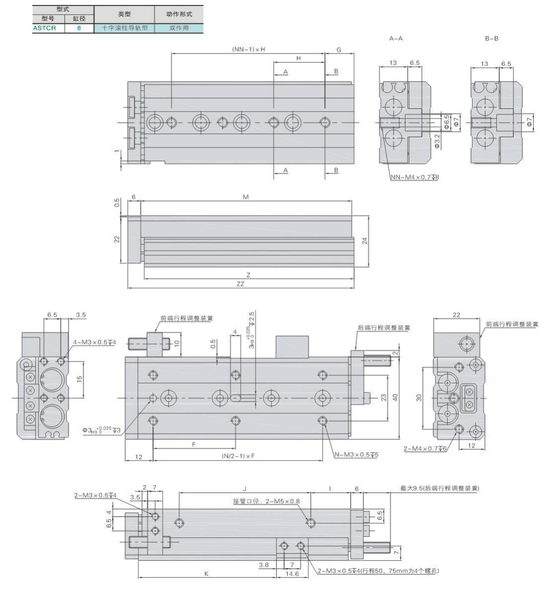 气动滑台 十字滚柱导轨型 缸径8 标准型