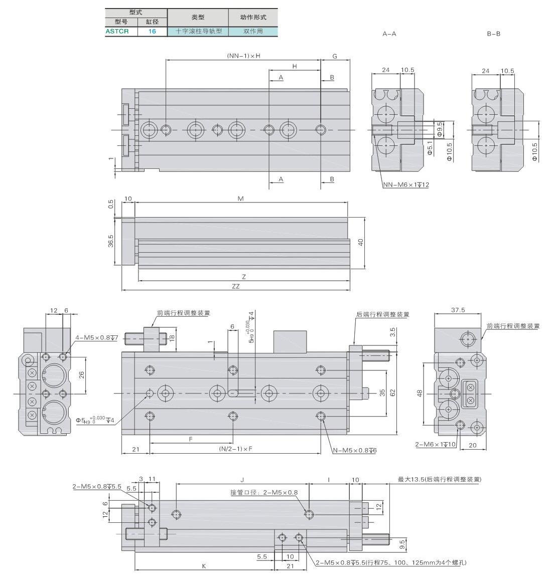 气动滑台 十字滚柱导轨型 标准型 缸径16