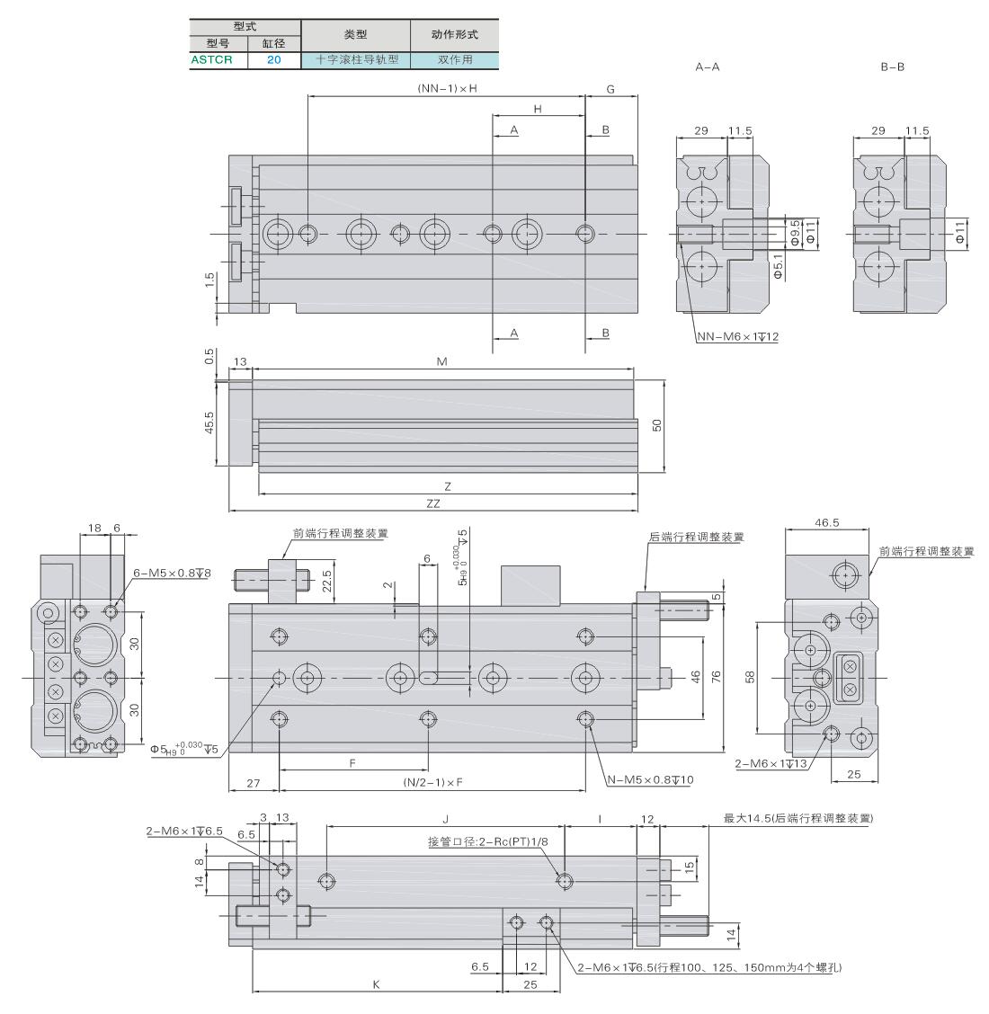气动滑台 十字滚柱导轨型 标准型 缸径20