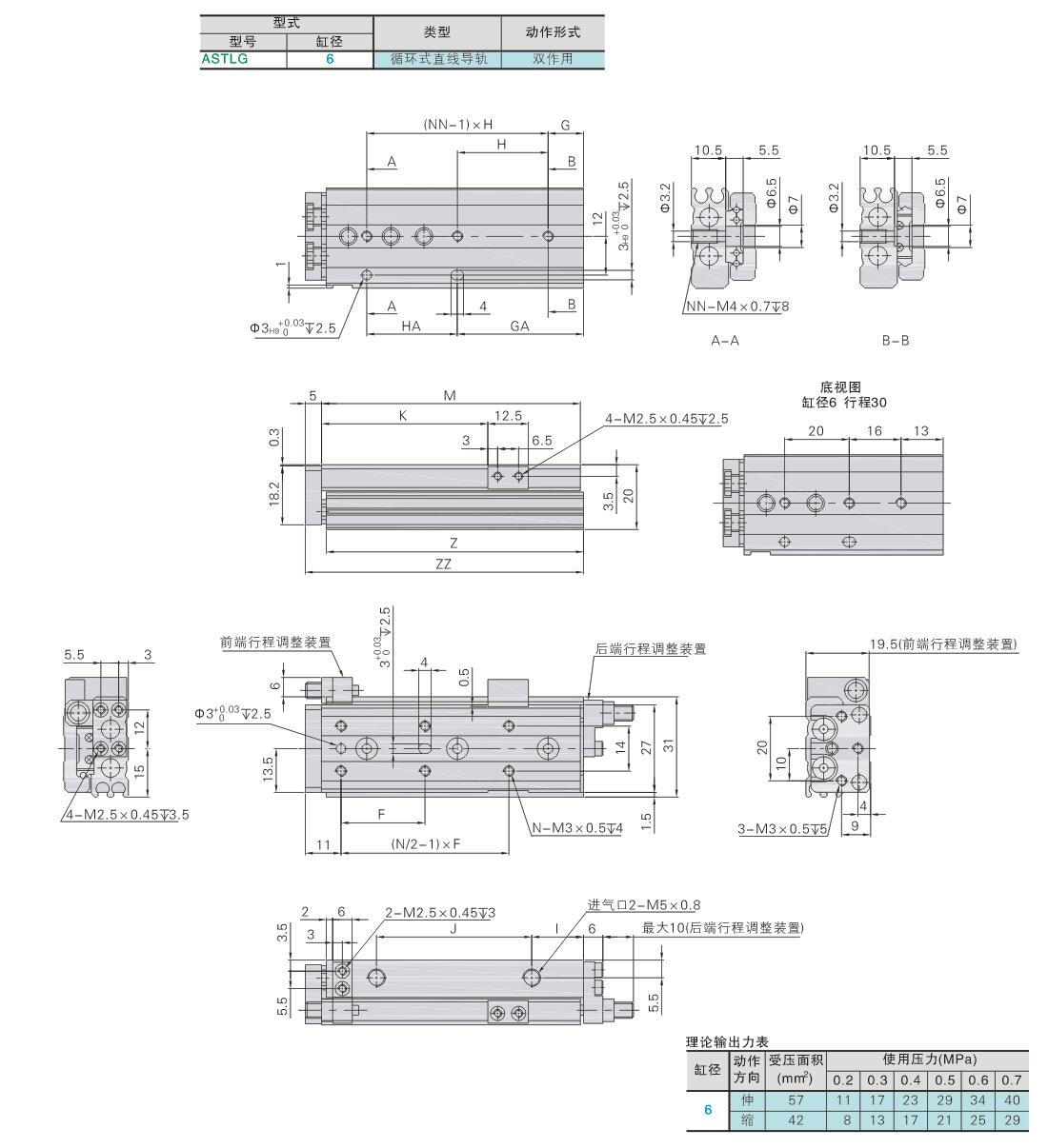 气动滑台 循环式直线导轨型 标准型 缸径6