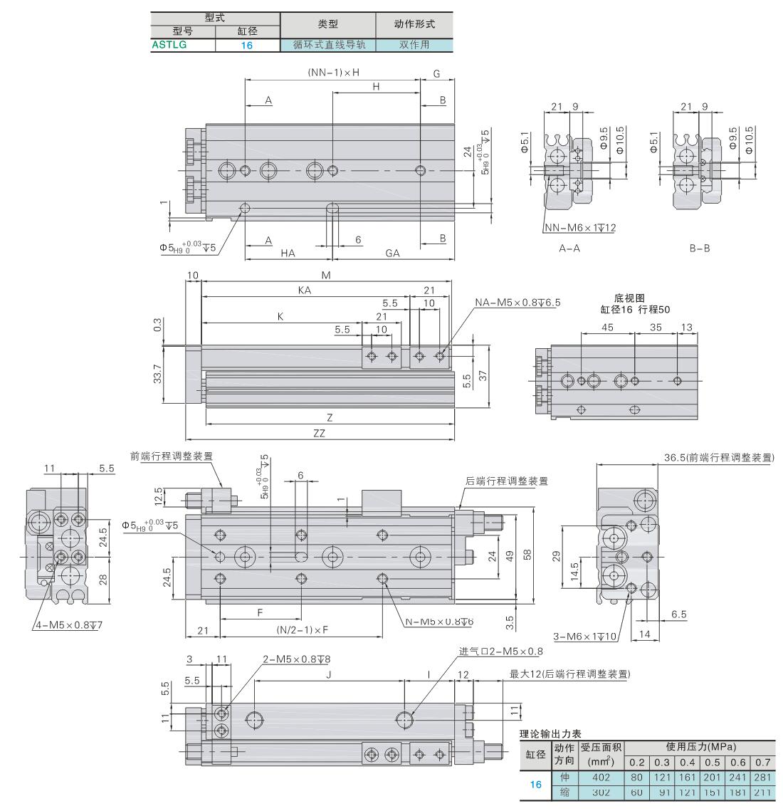 气动滑台 循环式直线导轨型 标准型 缸径16