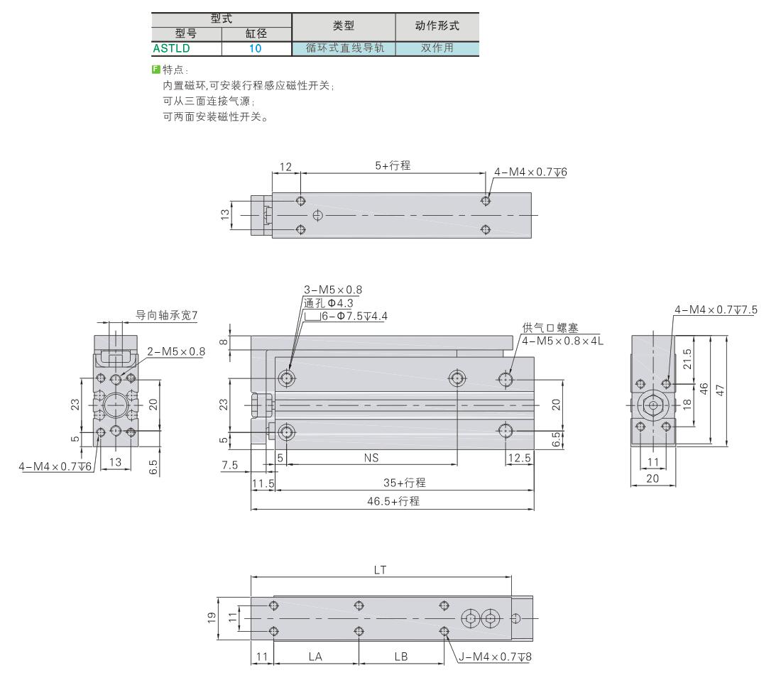 气动滑台 循环式直线导轨型 侧轨型 缸径10