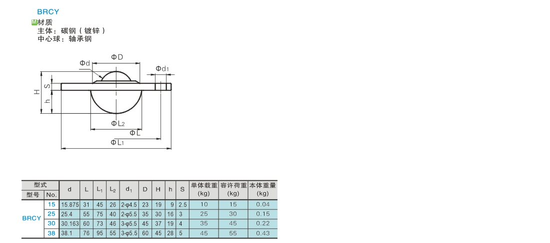 万向球 冲压轻载型 圆法兰式(BRCY)