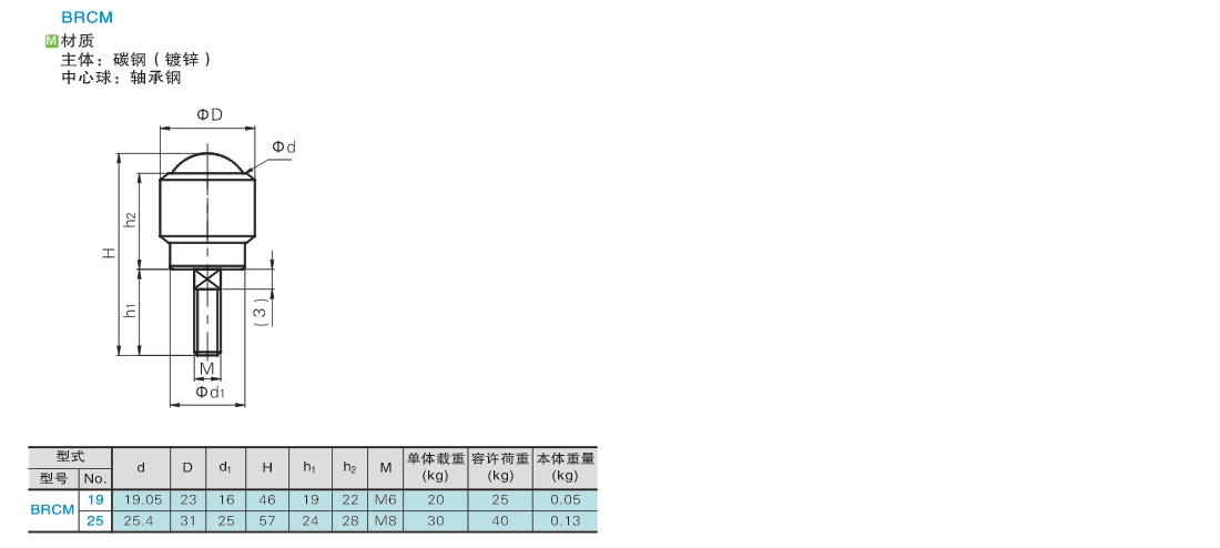万向球 冲压轻载型 外螺纹式(BRCM)