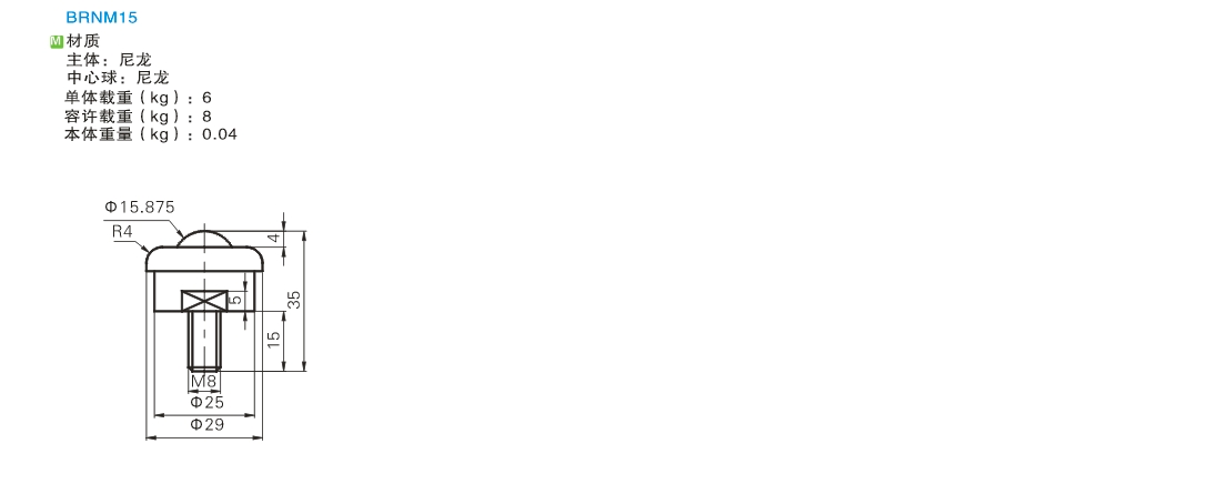 万向球 工程塑料型 外螺纹式(BRNM15)