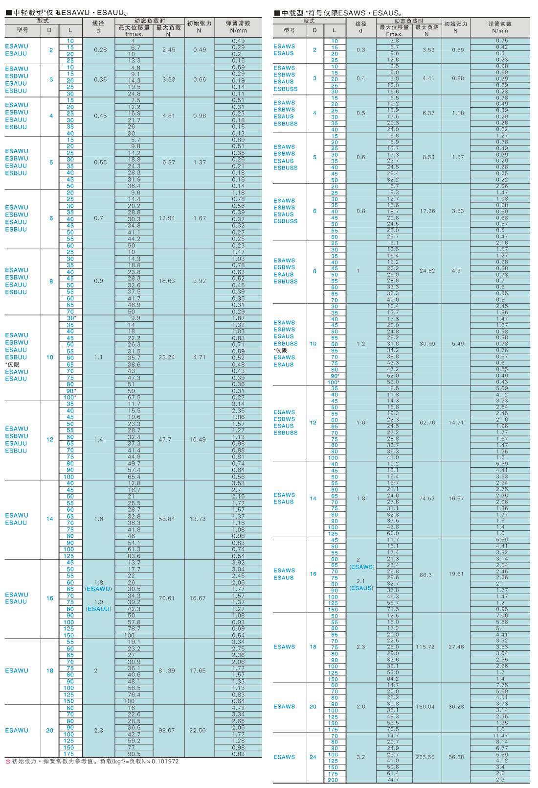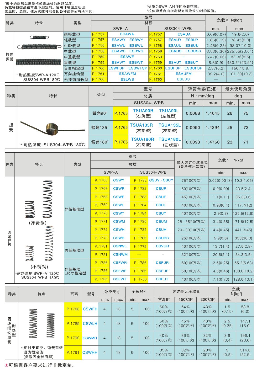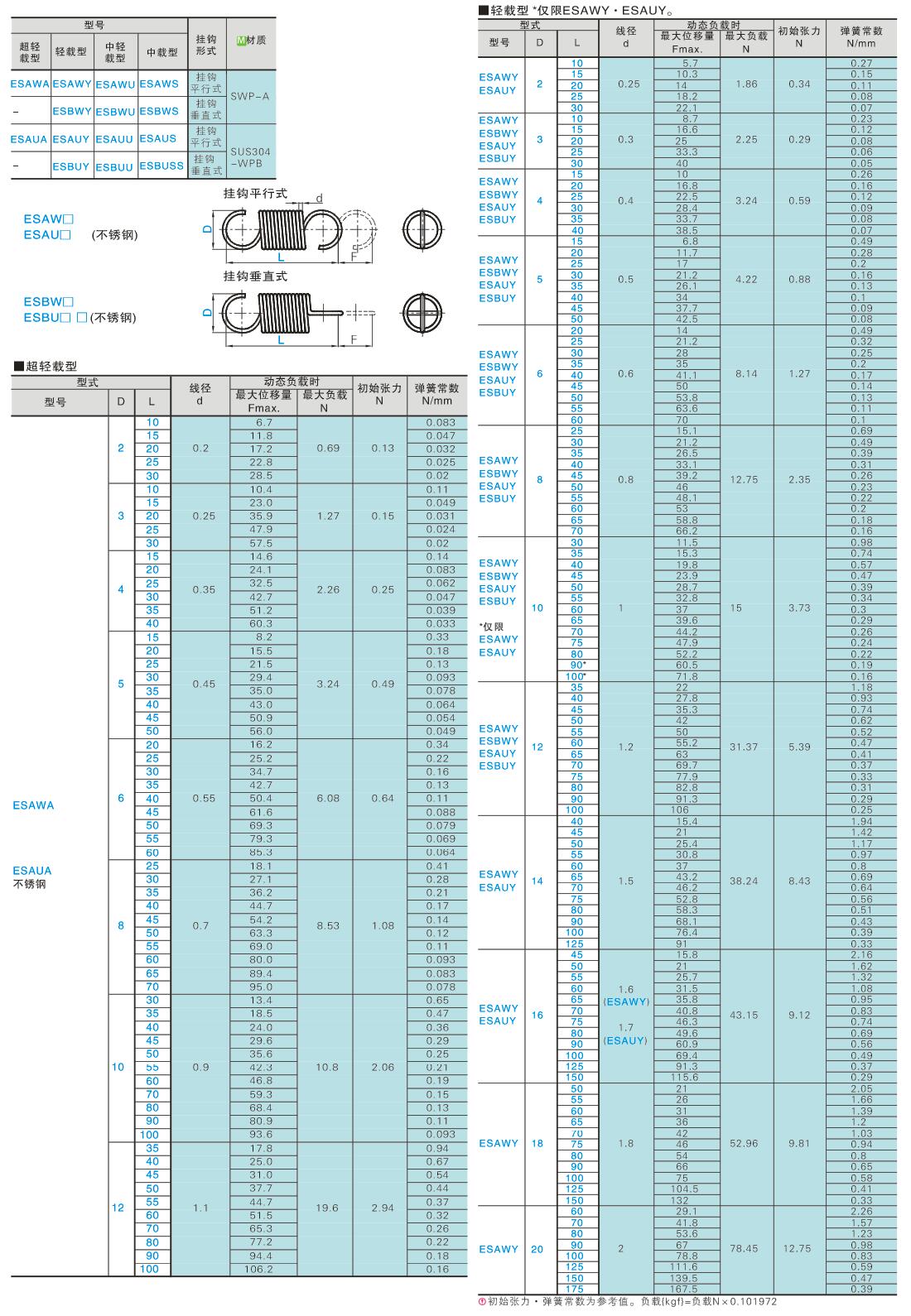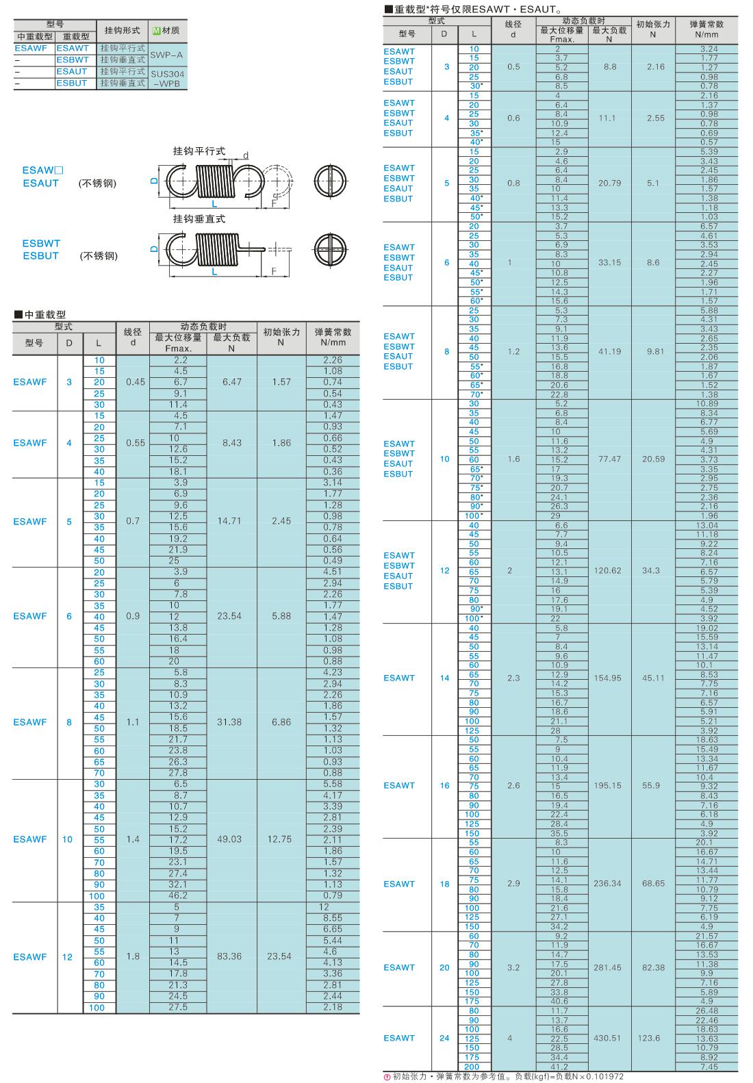 拉伸弹簧 超轻载型、轻载型、中轻载型、中载型、中重载型、重载型