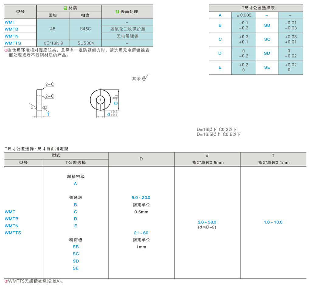 金属垫圈 T公差选择 尺寸自由指定型