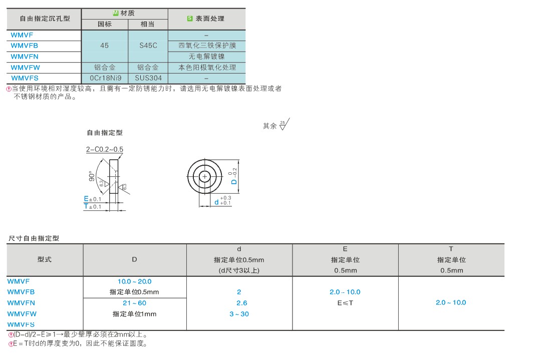 金属垫圈 90度沉孔型 尺寸自由指定型