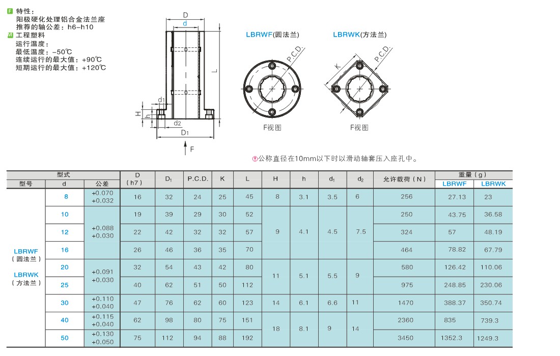 直线轴承 工程塑料型 法兰加长型