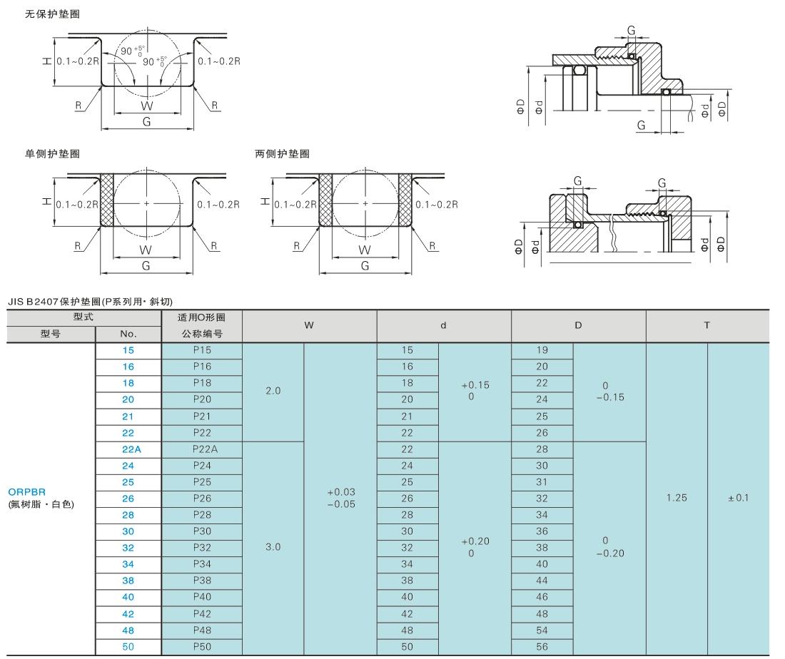 O型圈 JIS B 2407 保护垫圈(P系列用·斜切)