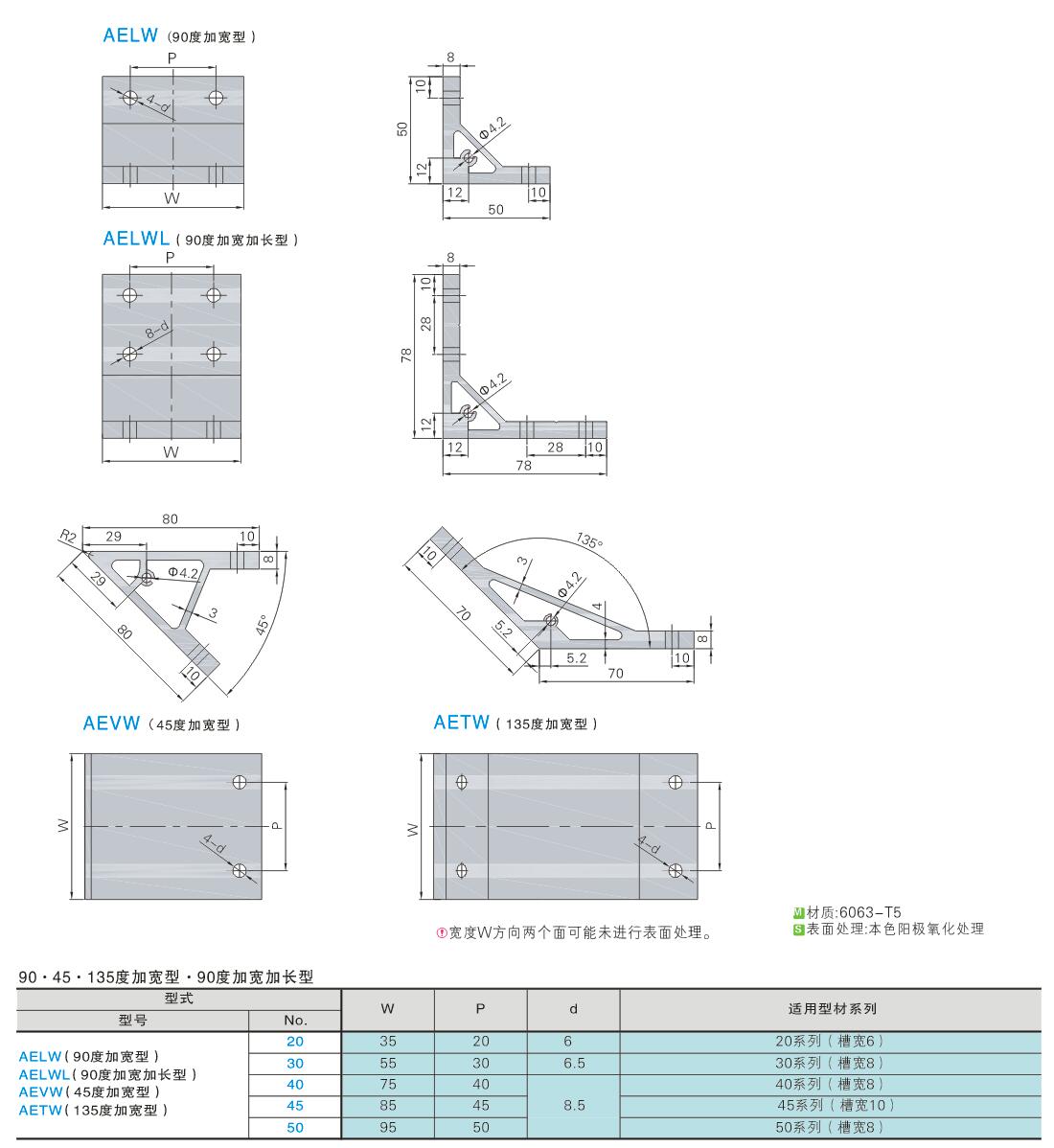 铝型材用配件 型材脚架 铝合金拉拔型 90/45/135度加宽型/90度加宽加长型