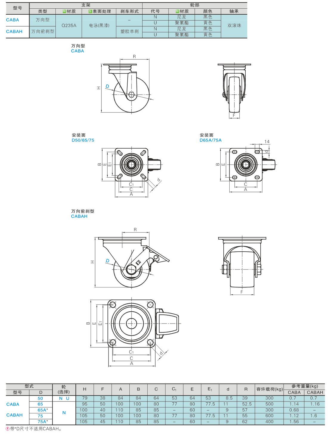 脚轮 低重心超重载型 万向型·万向前刹型