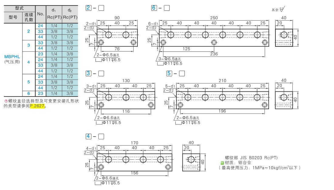 歧管块 横向通孔 顶孔型 螺纹直径固定型 气压用 40方型
