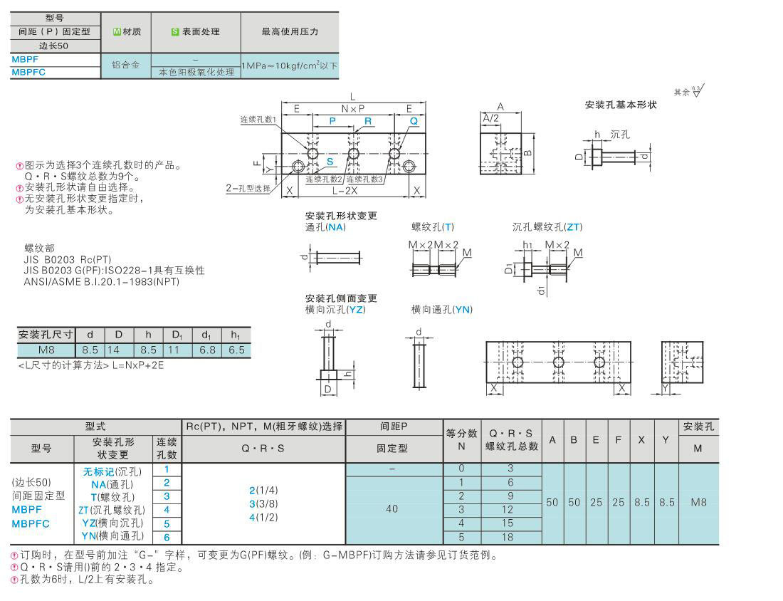 歧管块 T字孔型 气压用 间距固定型 边长50