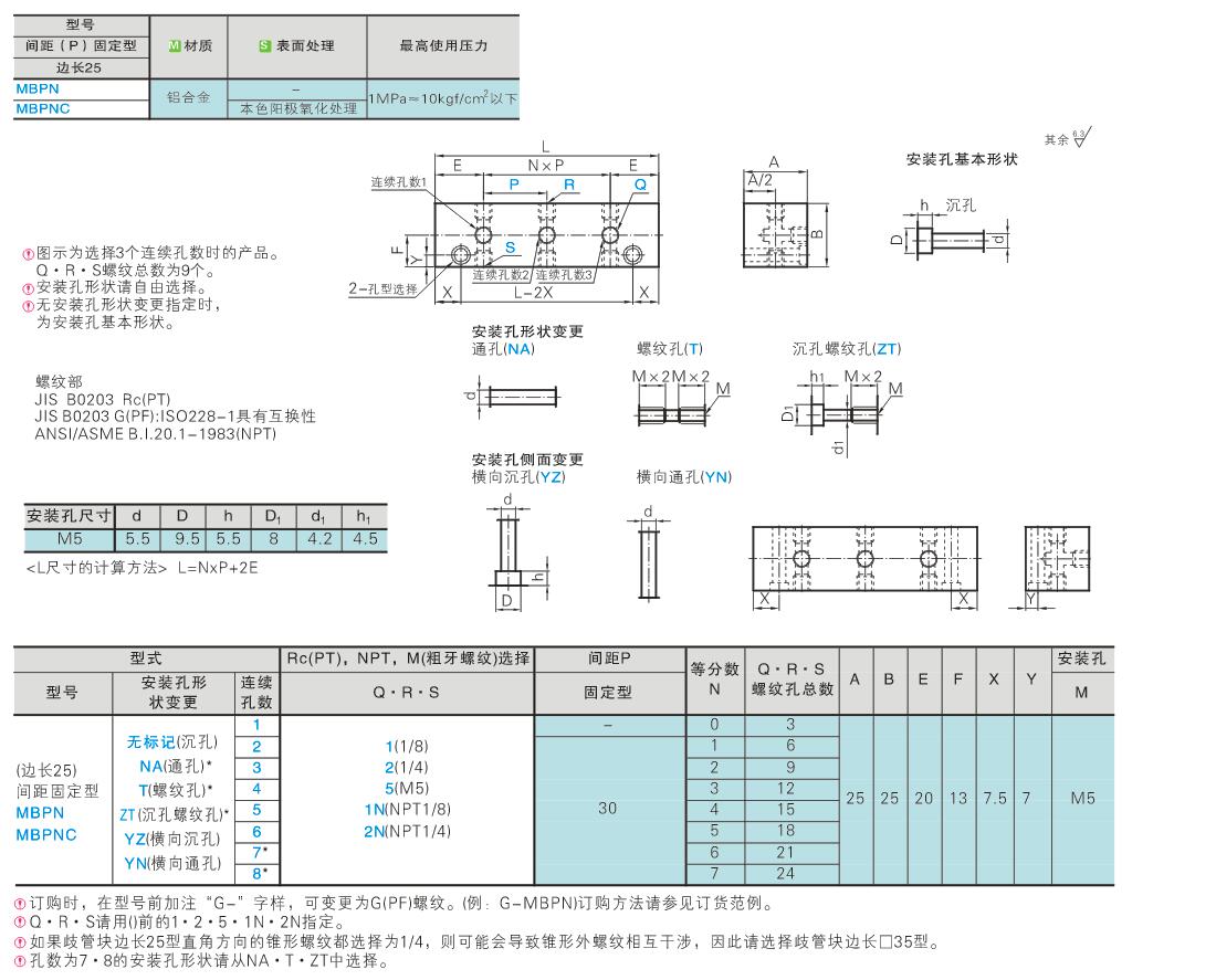 歧管块 T字孔型 气压用 间距固定型 边长25
