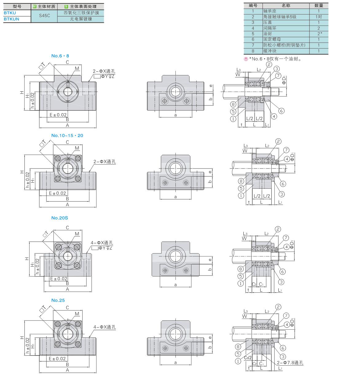 丝杠支撑座 方型 固定侧 标准带缓冲型