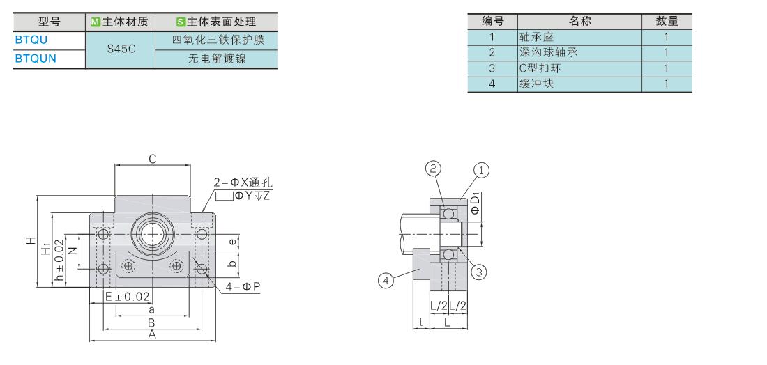 丝杠支撑座 方型 支持侧 狭小间距带缓冲型