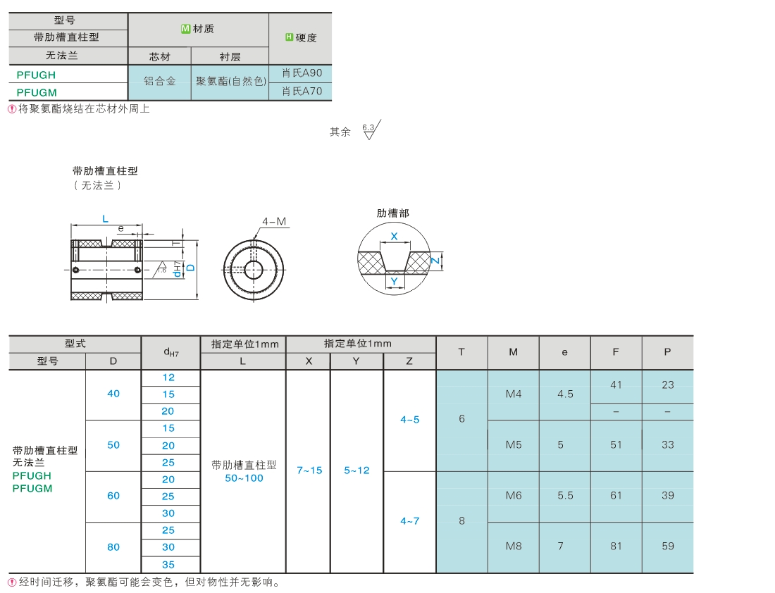 平皮带用滑轮 宽度L=25~100 聚氨酯型 带肋槽直柱型 无法兰