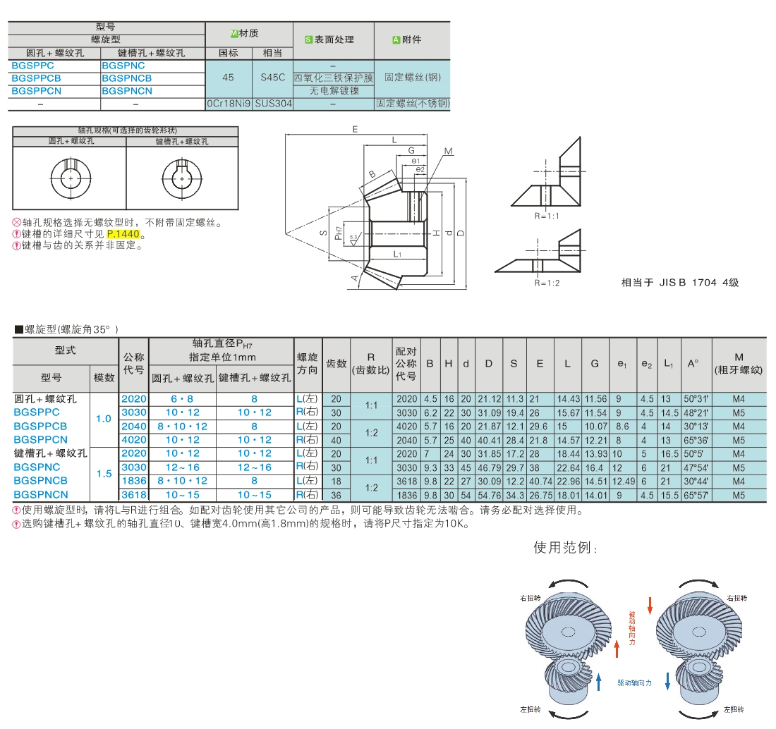 锥齿轮 压力角20° 螺旋型 模数1.0/1.5(螺旋角35°)