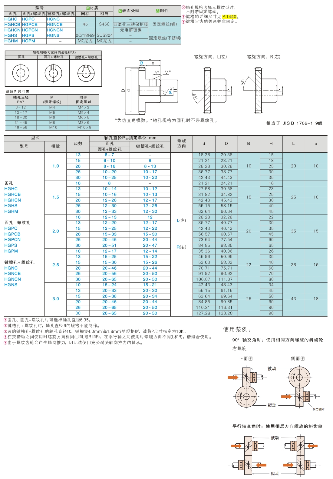 螺旋齿轮 压力角20° 螺旋角45° 模数1.0/1.5/2.0/2.5/3.0