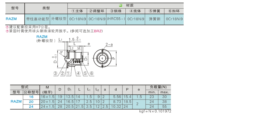 钢珠滚轮 带柱塞功能型 外螺纹型